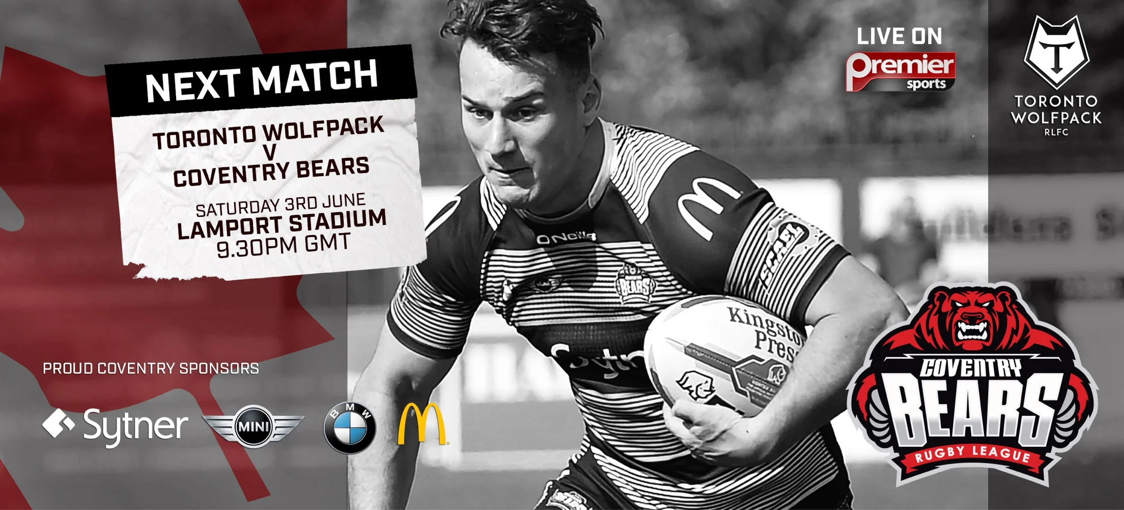 This Saturday will see history being made as Coventry Bears play Toronto Wolfpack over in Canada [kick-off 9.30BST], a game being broadcast live on TV both sides of the Atlantic.
